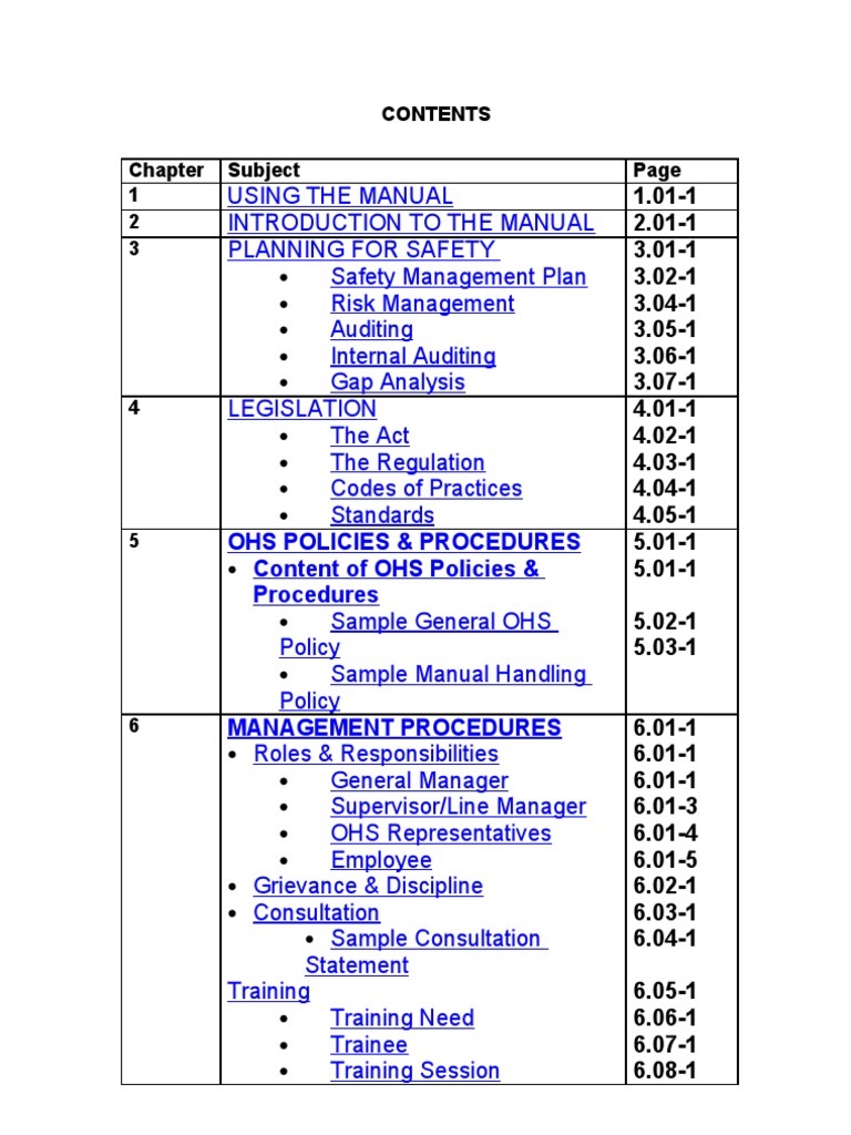 Generic Manual Safety Manual V2 Hazards Occupational Safety